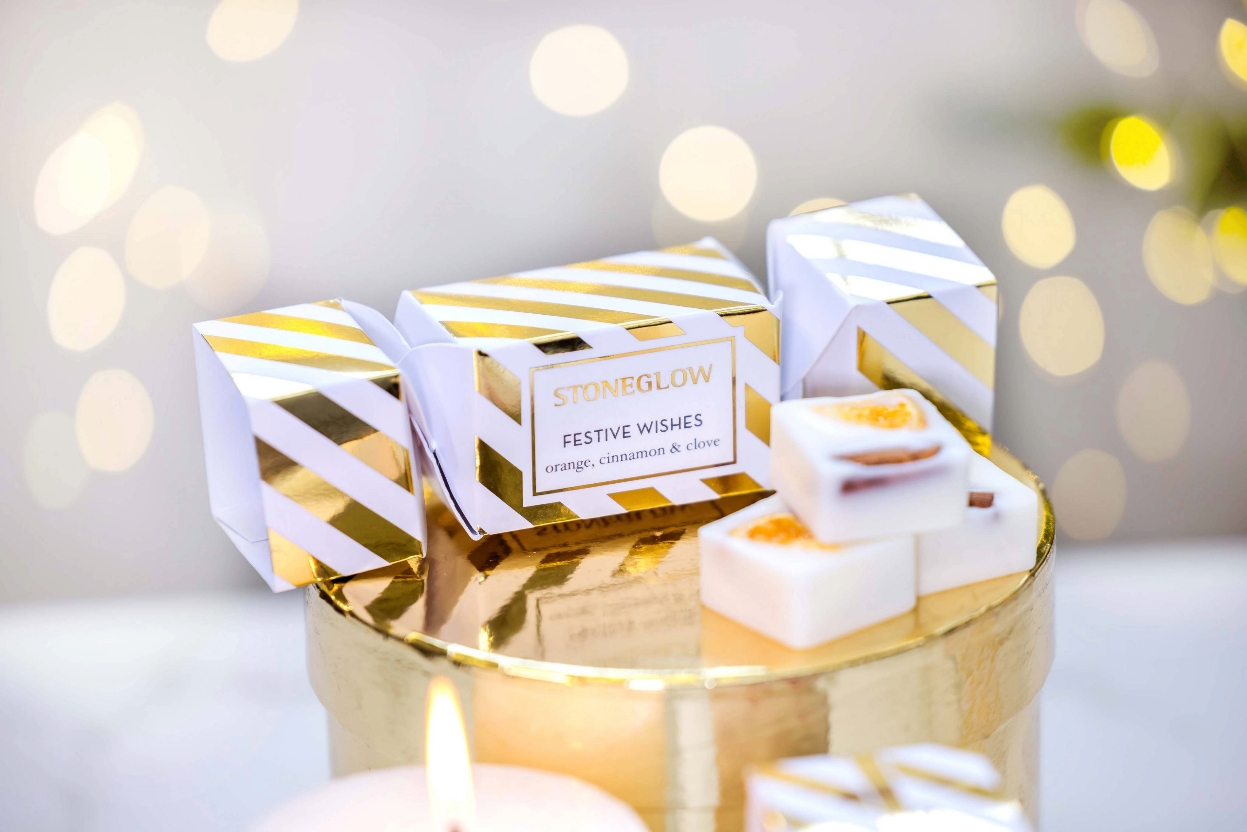 • 1 x Stoneglow Festive Wishes botanical soy wax melts :  3 botanical soy wax melts housed in a mini cracker