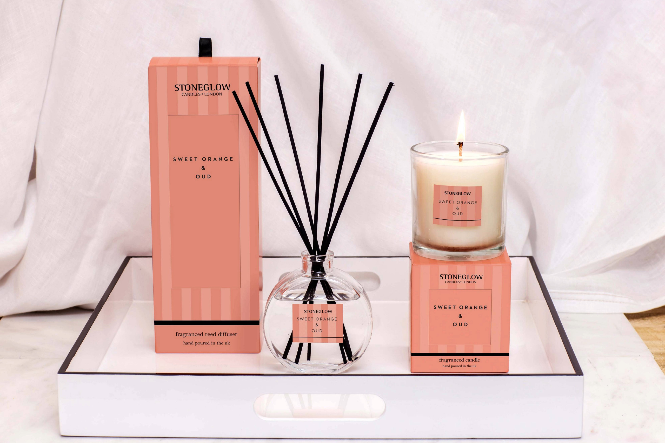 SWEET ORANGE & OUD – A sumptuous citrus fragrance where bold nuances of spices and woody oud delightfully contrast the burst of radiant oranges on a base of smooth vanilla that softens the accord.
